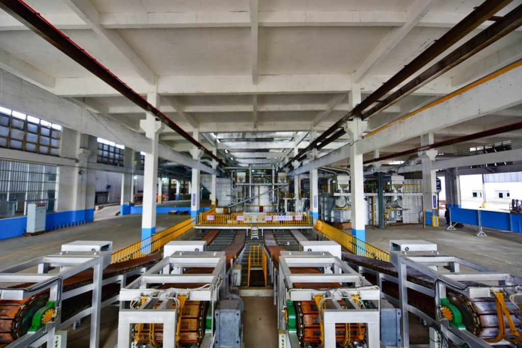 The company has domestic advanced recycled aluminum alloy ingot production technology. Aluminum alloy ingot production line has a high degree of automation, and the two-chamber melting furnace is equipped with regenerative combustion system, liquid aluminum stirring circulation system, flue gas incineration system, automatic temperature control system.   Also the line adopted crushing system, X-ray sorting system, automatic feeding system, circulating water cooling system, laser typing, robot automatic ingot stacking, automatic weighing and other advanced equipment, and realize equipment data interconnection, to build the intelligent manufacturing demonstration production line of Baotai Group.