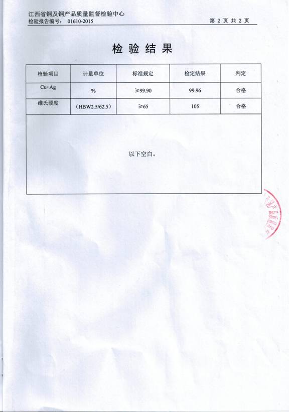 银 + 铜+银 CuAg:≥99.9 锡 Sn :≤0.002 锌 Zn:≤0.005 铅 Pb:≤0.005 镍 Ni:≤0.005 铁 Fe:≤0.005 铍 Sb :≤0.002 硫 S :≤0.005 砷 As :≤0.002 铋 Bi:≤0.001 氧 O:≤0.06 (杂质) 注:≤0.1